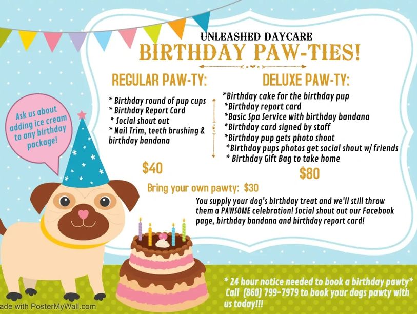 Full days of daycare are anything over 5 hours. We offer a 25% discount for each additional dog in the same household.